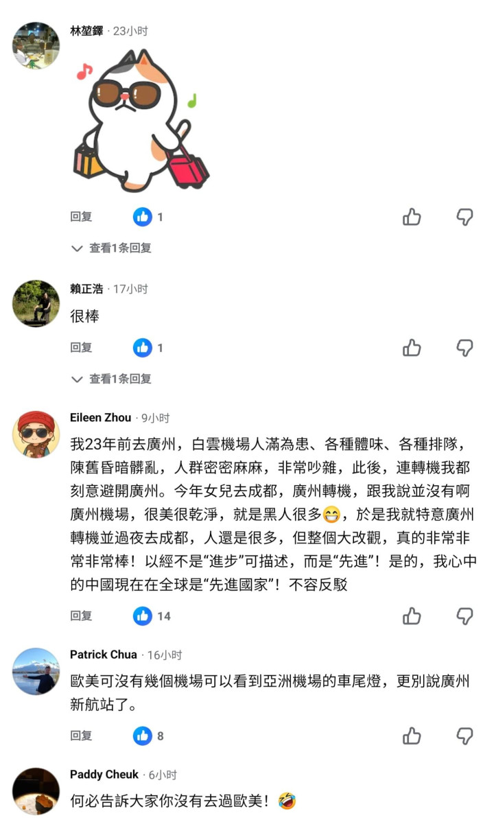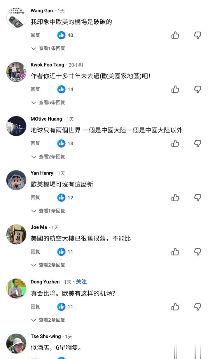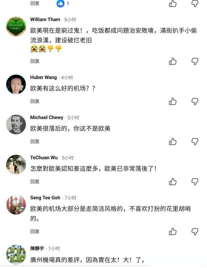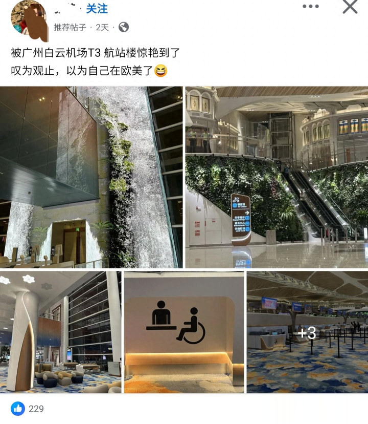 TW网红在广州白云机场在自己的个人社交平台上感慨“被广州白云机场T3航站楼惊艳到了,叹为观止,以为自己在欧美了”,被TW网友疯狂输出,怀疑她有没有去过欧美[捂脸]